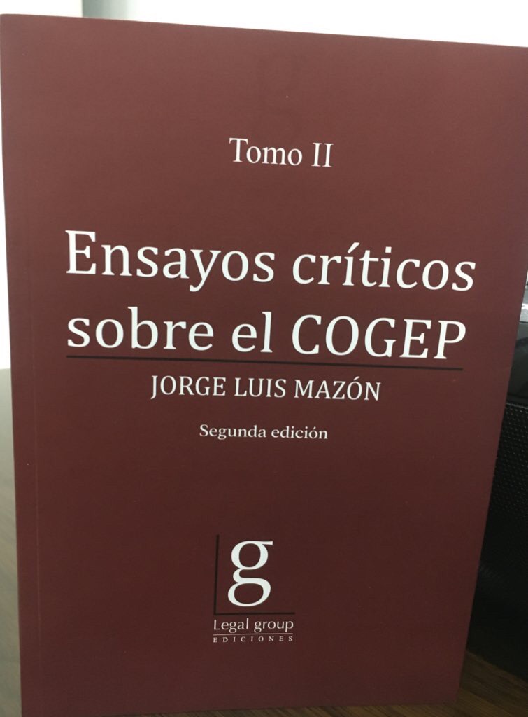 En el caso de que quien lea estas líneas no conozca al doctor Jorge Luis Mazón y su trabajo, es el actual presidente del Instituto Ecuatoriano de Derecho Procesal (IEDP), es un destacado abogado y docente universitario, además de que es autor de dos obras indispensables para todo abogado que quiera litigar en juicios que se sustancian con el COGEP: “Ensayos Críticos sobre el COGEP”, la cual tiene dos tomos.